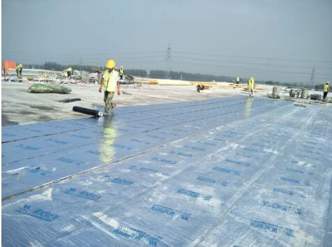 結(jié)構(gòu)基層清理完成之后,先在結(jié)構(gòu)基層上濕鋪滿粘一道1.5mm厚BAC-P雙面自粘防水卷材,如圖4所示。