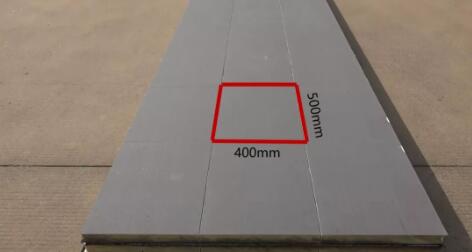 為使板材能與基層卷材更服帖,板材在生產(chǎn)之后進(jìn)行分切,分切大小為400mmⅹ500mm,板材分切深度為板材底部至板材頂部5mm處,如圖5所示。
